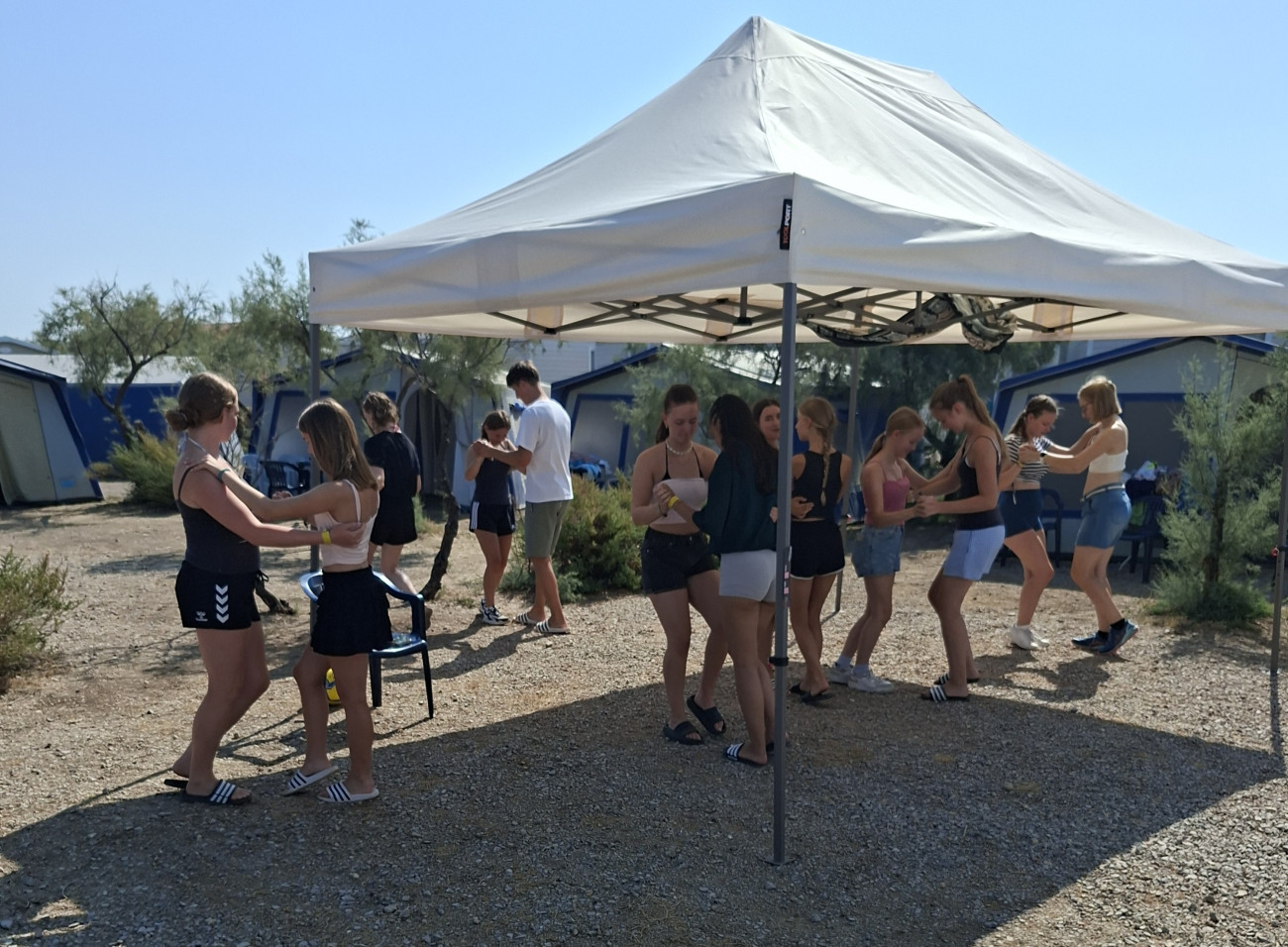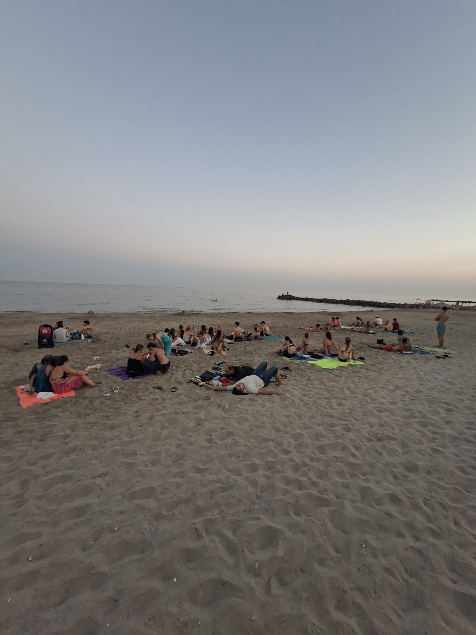 Die nächsten Tage standen ganz im Zeichen von Strand und Meer. Ob Volleyball spielen, chillen am Wasser oder einfach nur die Sonne genießen – jeder fand sein persönliches Strandparadies. Besonders kreativ wurde es beim Sandburgen-Wettbewerb, bei dem eine Gruppe sogar eine beeindruckende Schildkröte aus Sand formte. An unserem "chilligen Sonntag" stand Entspannung auf dem Programm: Switch-Spiele, leckere Wraps und einfach mal die Seele baumeln lassen.